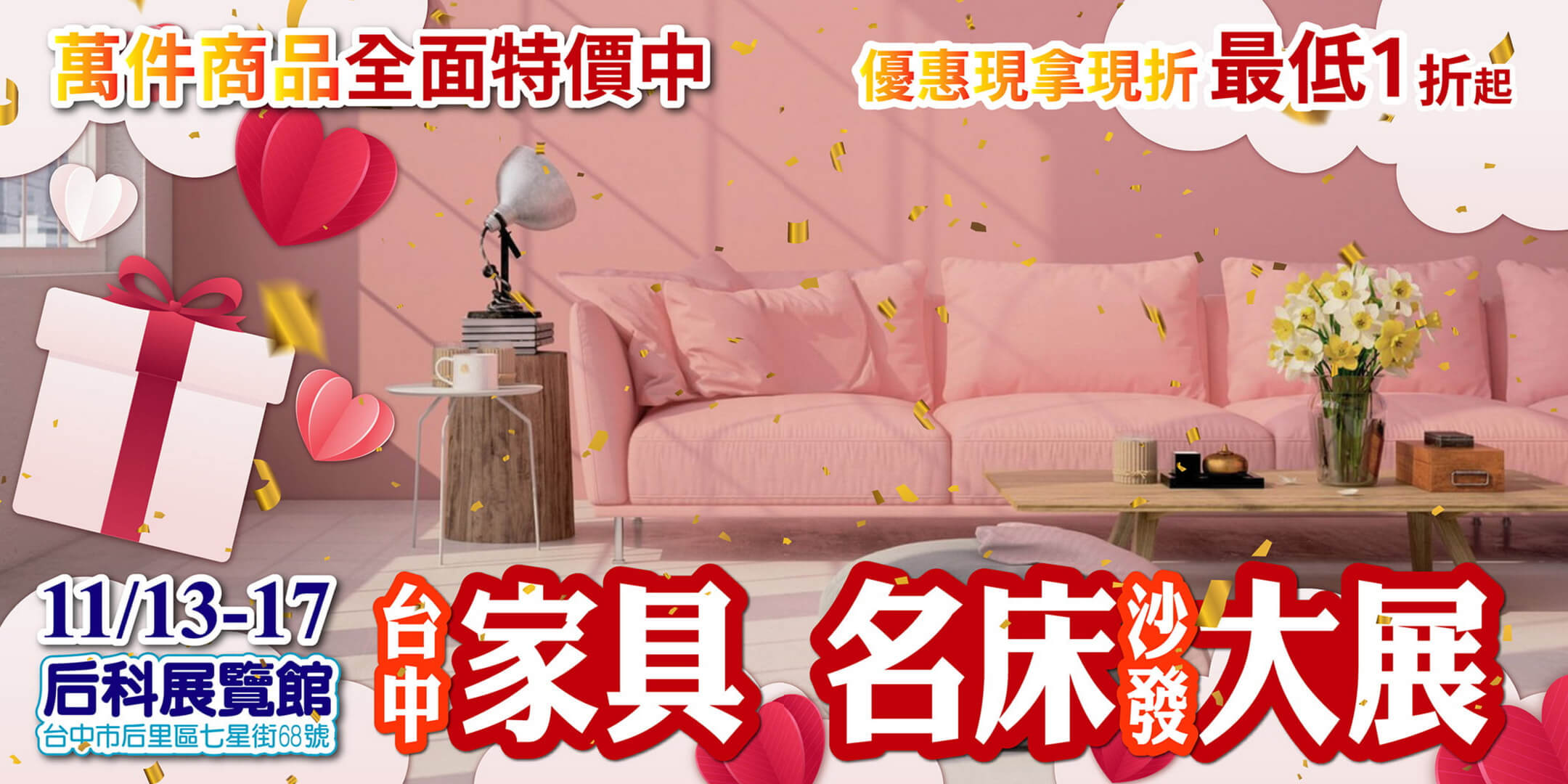 獨一無二的夢想家居,您值得擁有,普發1萬:家具源頭工廠加碼送1萬元購物金,萬件商品全面特價中,全屋家具超齊全輕鬆一站購足,買1送1買沙發送茶几,電動按摩調整床免費升級再送最高10萬元補助,讓您用平價品味奢華定制生活!